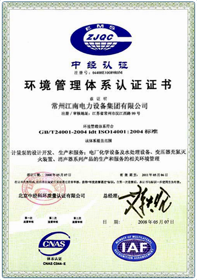 中經(jīng)環(huán)境管理體系認證證書